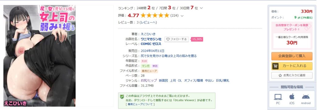 【尻で女を見分ける俺は女上司の弱みを握る】はDLSiteが1番お得!